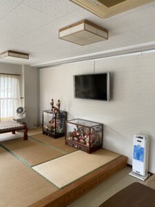 コミュニティハウス水野にて天井と壁の場所にアルミ曲げのエキスパンション取付です