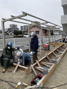 菊陽町マンションにて四国化成の駐輪場の組み立て事例