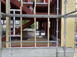 最後外部に掲示板を付ける為外壁貼る前に下地取付。この作業をしないと最後大変な目にあいます